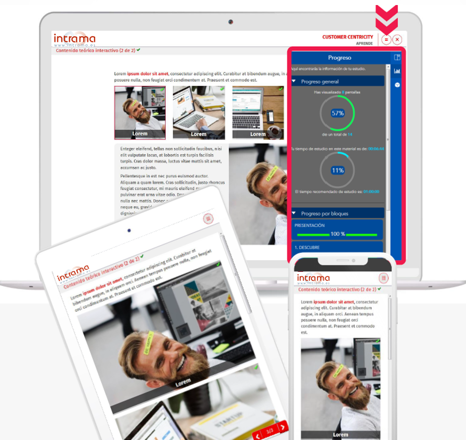 La interfaz del curso es, sobre todo, SENCILLA e INTUITIVA. 100% Responsive.